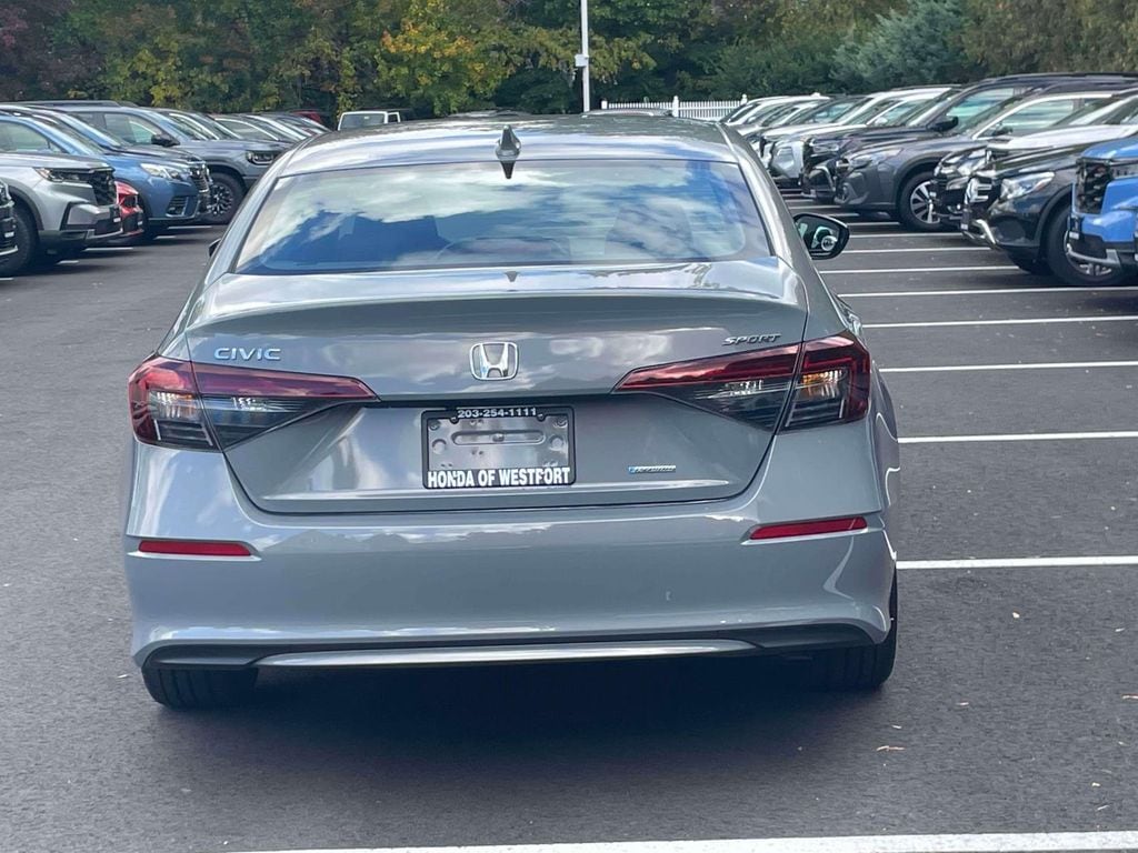 Certified. Gray 2025 Honda Civic Hybrid Sport 4D Sedan FWD eCVT 2.0L 16V DOHC 50/47 City/Highway MPG
